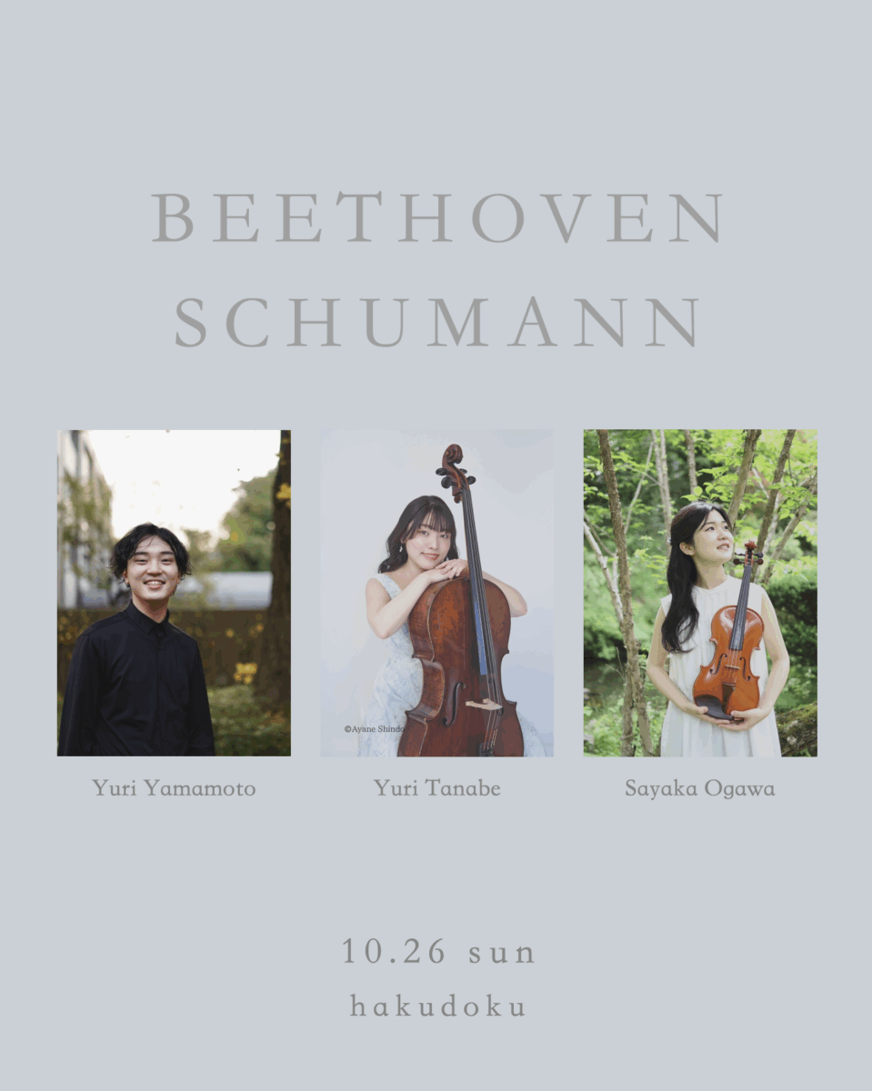 今回は、ベートーヴェンが若き日に書いた二重奏曲と、代表作《幽霊》三重奏、清澄な光を放つピアノソナタ第24番、そしてシューマン晩年の濃密な情感を湛えたピアノ三重奏曲第3番をお送りいたします。